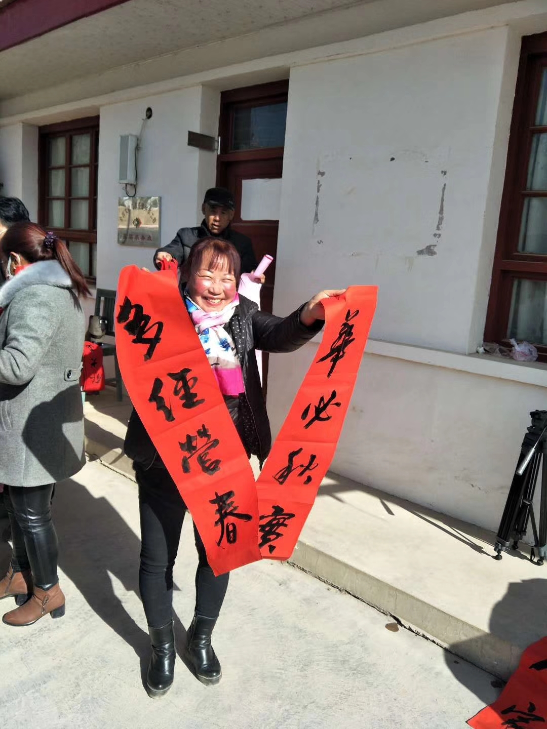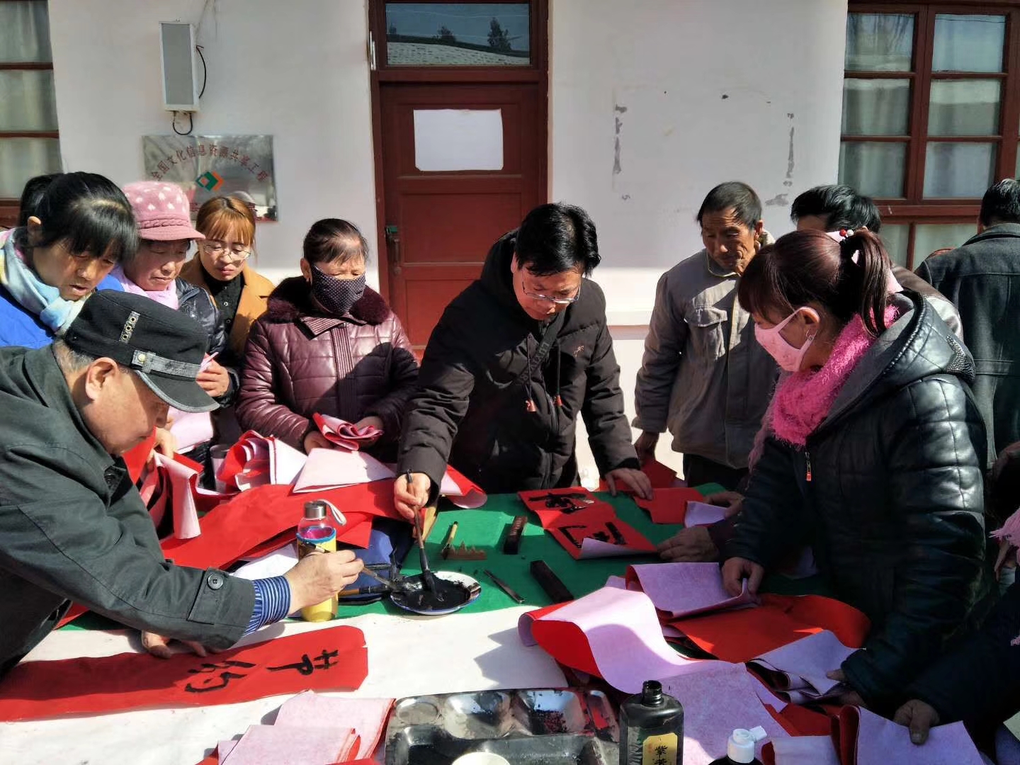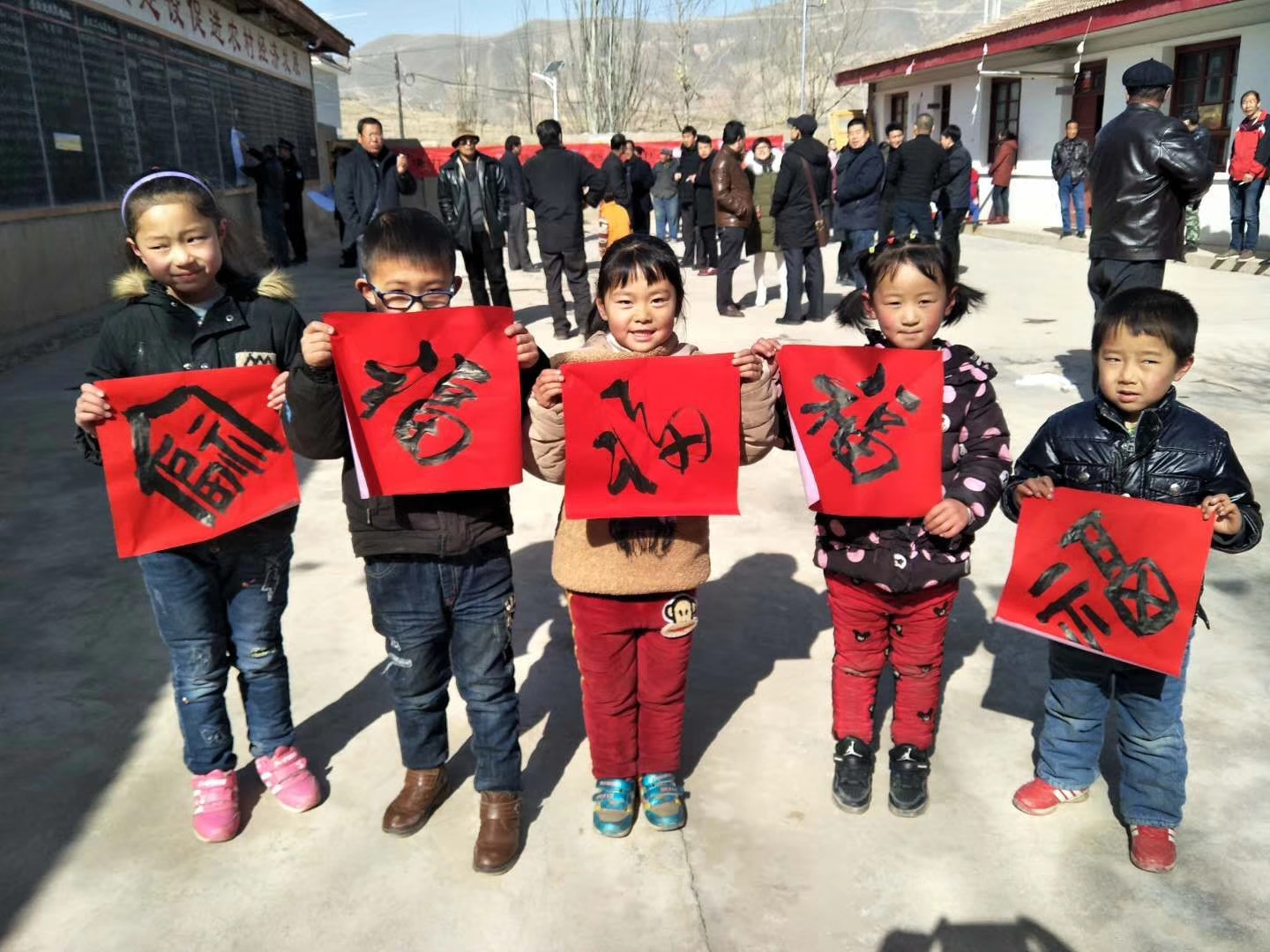 2月11日,兰州军创社会工作服务中心“退伍不褪色 迎新春 送温暖下乡”活动在榆中县高崖镇关门口村举行。本次活动由兰州胡桃里城关店赞助,得到甘肃省双拥办、兰州市双拥办、兰州市军转办的大力支持与参与!并邀请到中国书画家协会会员、甘肃省书法家协会会员李苏隆老师;著名画家、书法家、摄影家、甘肃省民盟书画院理事、兰州市民主党派艺联会成员尹鸿才老师;中国书法家协会注册教师、中国硬笔书法协会会员、中国书法教育协会会员鲁军虎老师为榆中县高崖镇关门口村送福,送春联。 当天一大早,兰州军创社会工作服务中心志愿者同爱心企业、爱心人士一行冒着严寒来到榆中县高崖镇关门口村,乡亲们已早早等在村口并热情欢迎大家的到来。甫一抵达,书法家们便开始挥毫泼墨,为村民们书写春联和福字,村民们将书画桌围了个水泄不通,拿着心仪的春联和福字,村民们脸上写满微笑和幸福。