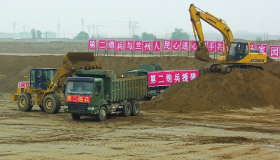 驻兰部队援建的兰州新区2号生态湖发布时间:2013-10-21 16:42:58 点击数: 来源: