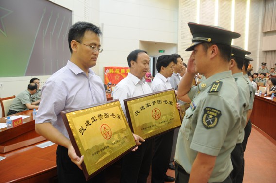 为援建的军营图书室授牌