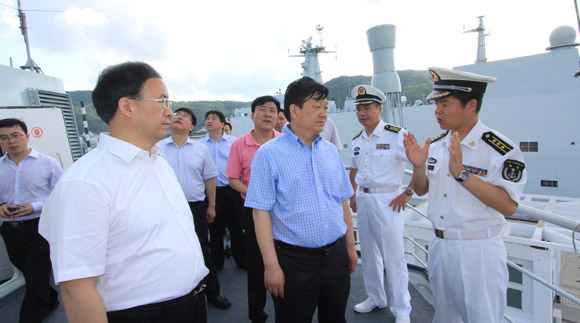 4月28日,圆满完成西太平洋远海攻防演练和巡航钓鱼岛凯旋的“兰州舰”全体官兵,受到了兰州市慰问团的亲切慰问。省委常委、市委书记虞海燕,市委副书记、市长袁占亭对“兰州舰”全体官兵为祖国争光、为兰州赢得荣誉表示祝贺和亲切慰问,并希望兰州市与“兰州舰”军地共建活动不断巩固、深入发展。