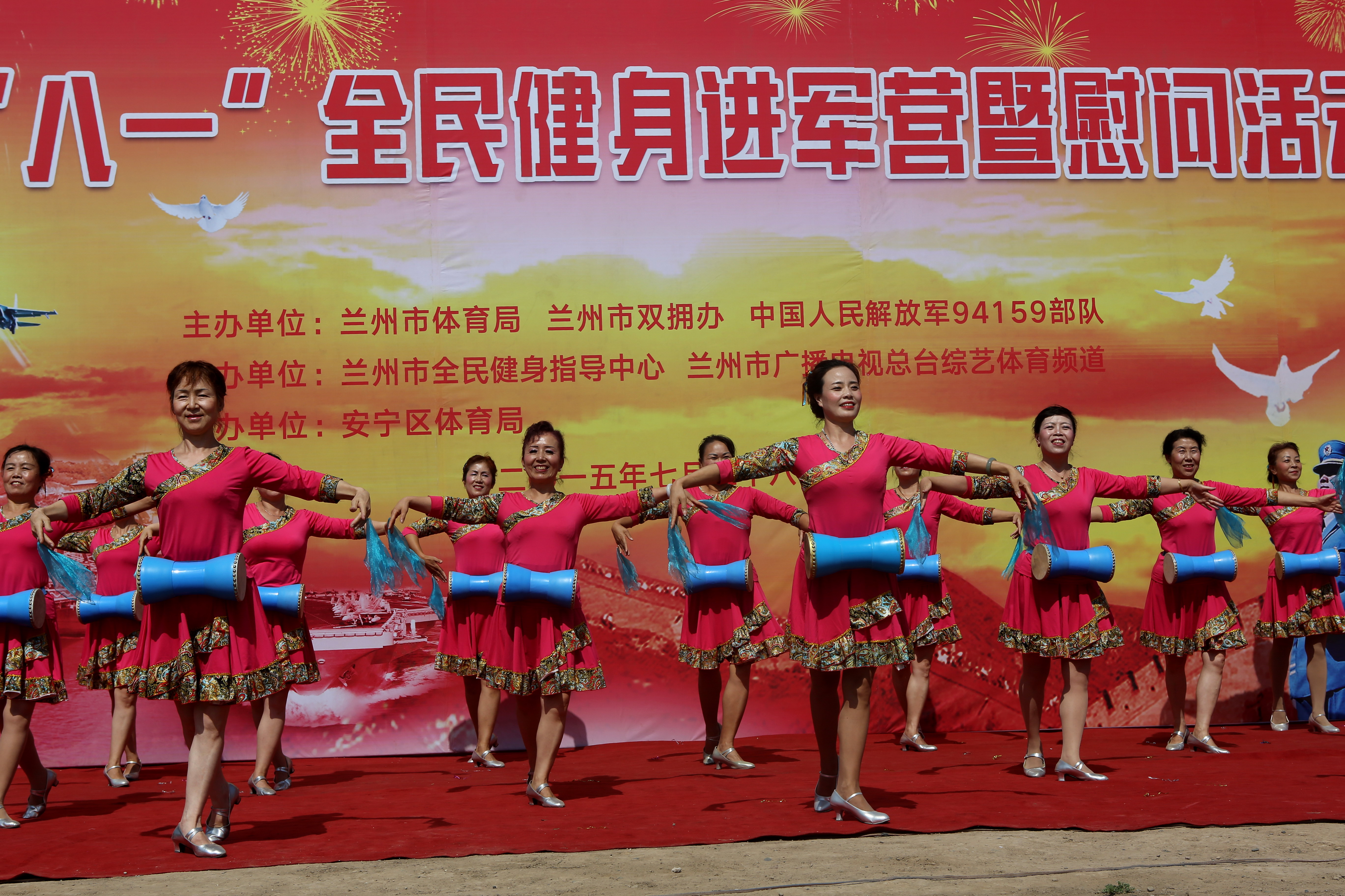 7月28日上午,由市体育局、市双拥办、中国人民解放军94159部队主办,兰州市全民健身指导中心、兰州市广播电视总台综艺体育频道承办,安宁区体育局协办的2015年“庆八一”全民健身进军营暨慰问活动,在驻兰解放军94159部队举行。 这次活动由军地文艺演出、拔河比赛、篮球对抗赛、现场书画创作等组成。在文艺演出现场,军地80多名演员登台表演了舞蹈、歌曲、武术等精彩节目,赢得官兵阵阵掌声和喝彩声;拔河比赛、篮球对抗赛更是将活动引向高潮,加油声、呐喊声此起彼伏,气氛十分热烈;参加活动的书法家、美术家凝神静气、专心创作,熟练的技艺和大气的作品,让官兵赞叹不已。活动现场,市双拥办、市全民健身指导中心向部队官兵赠送了慰问品和体育健身器材,当天创作的书法、绘画作品也全部赠送给部队官兵。整个活动紧凑、热烈,丰富了官兵文化生活,营造了浓浓的拥军氛围,加深了军爱民、民拥军、军民团结一家亲的鱼水之情。 自2009年以来这项活动连续举办七届,已经成为我市军民共建活动的有效载体和每年“庆八一”系列活动的重要组成部分,成为我市双拥宣传的闪亮品牌。自去年以来,兰州广播电视总台综艺体育频道对活动进行全程录播。(双拥办)