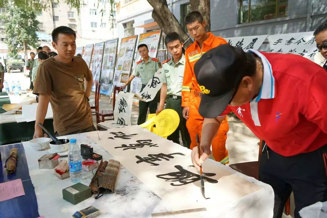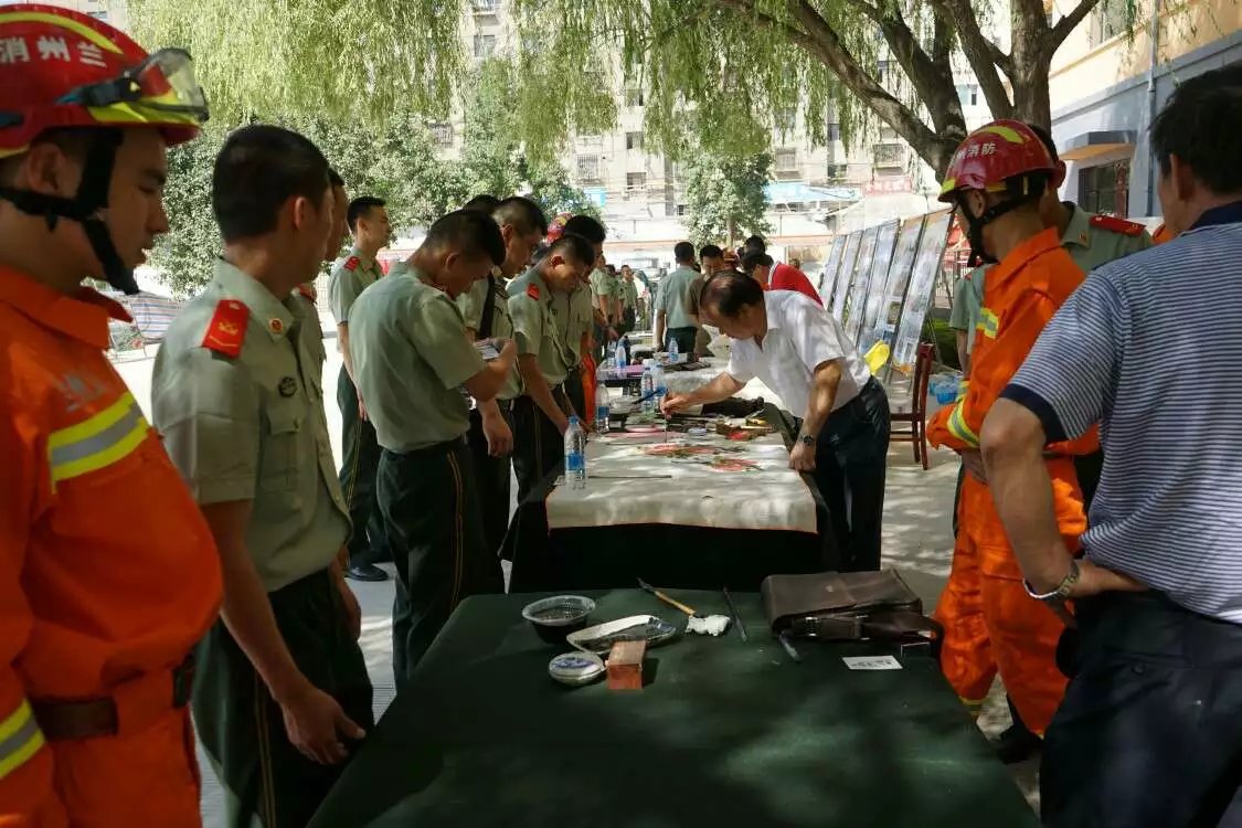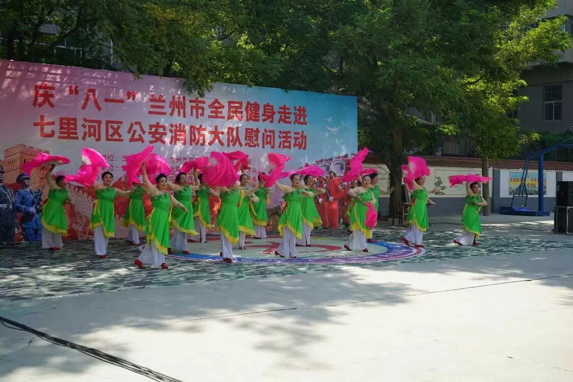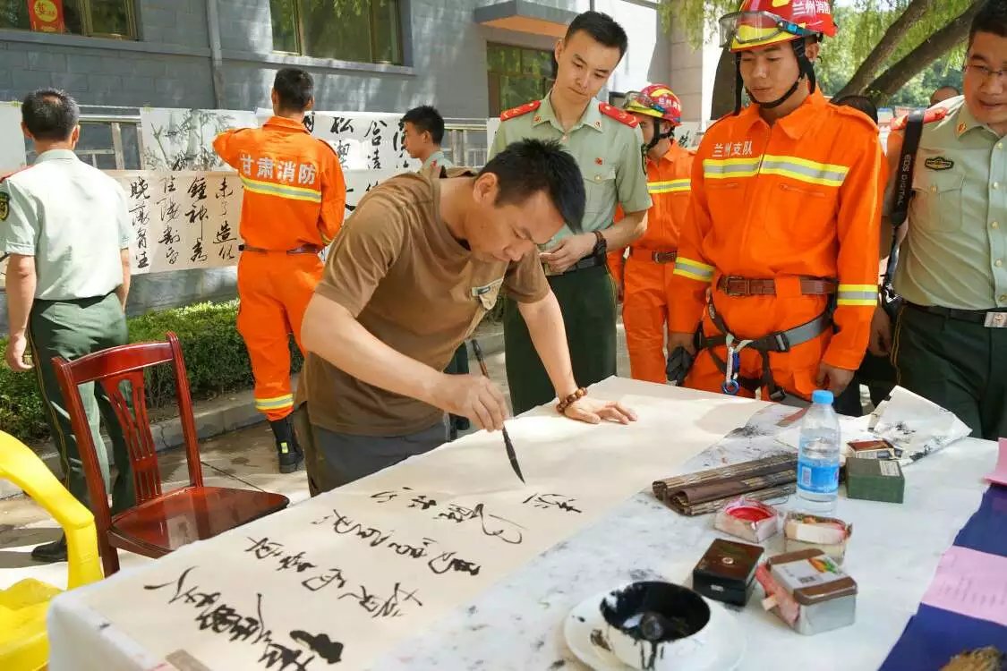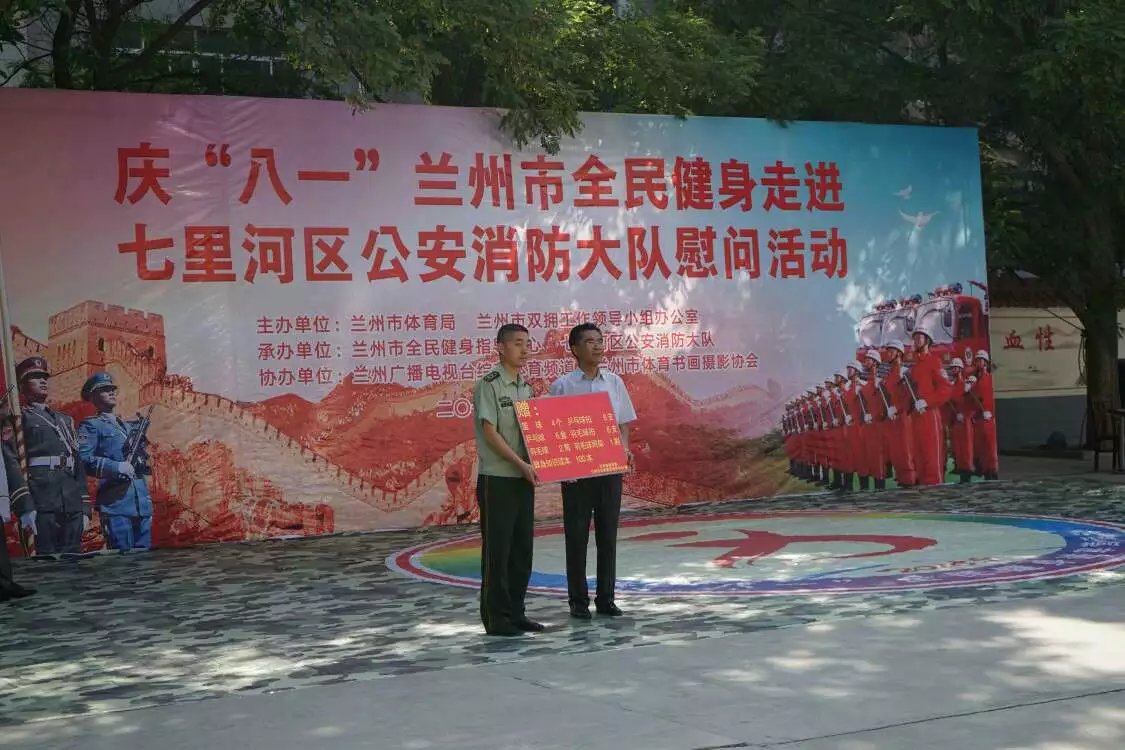2016年7月29日烈日炎炎,在第89个建军节即将来临之际,兰州市全民健身走进了七里河区公安消防大队,不仅为消防官兵送去了节日的问候,市体育局、市全民健身指导中心还为官兵赠送了体育器材和《健身知识读本》,多才多艺的消防战士表演了消防技能、相声、魔术,我们的群众健身团队为官兵献上了健身秧歌、舞蹈、水兵舞、歌伴舞等精彩的文体节目,五位书画家现场创作并赠送的书画作品,深得官兵喜爱。(市双拥办)