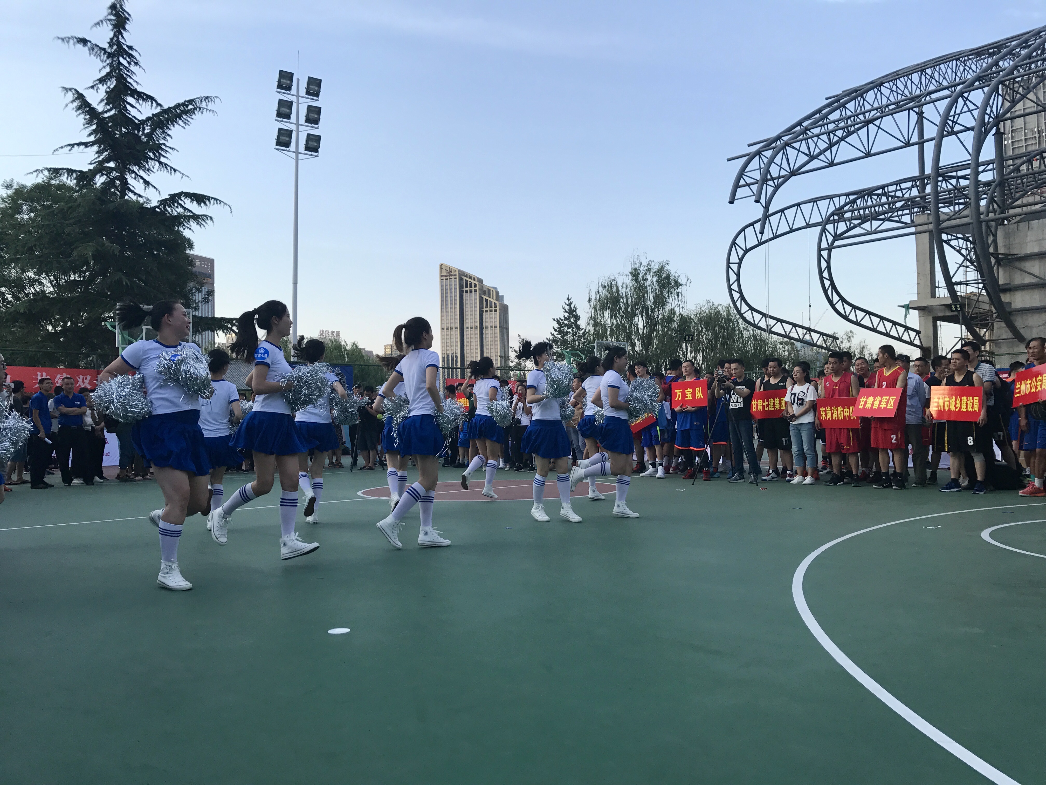 6月22日晚,兰州体育公园人声鼎沸,篮球宝贝热情助力。18:00整,随着裁判员一声哨响,兰州市第五届“双拥杯”篮球邀请赛如约开赛。参加此次邀请赛的24个军地代表队、260余名篮球爱好者,将在8天时间展开140余场次的激烈比赛。 这次邀请赛由市双拥工作领导小组主办,市双拥办、市民政局、市体育局承办,市全民健身指导中心、兰州市篮球运动协会协办。分为A组(市直机关组和部队组)、B组(县区组和社会组)两个竞赛组别同时进行。