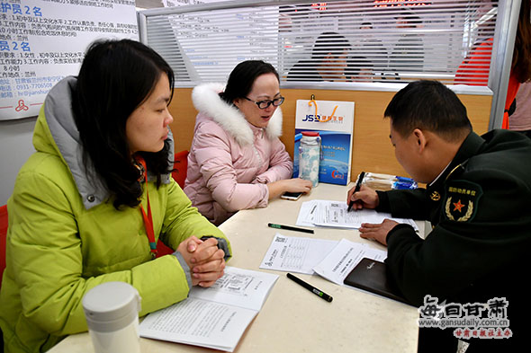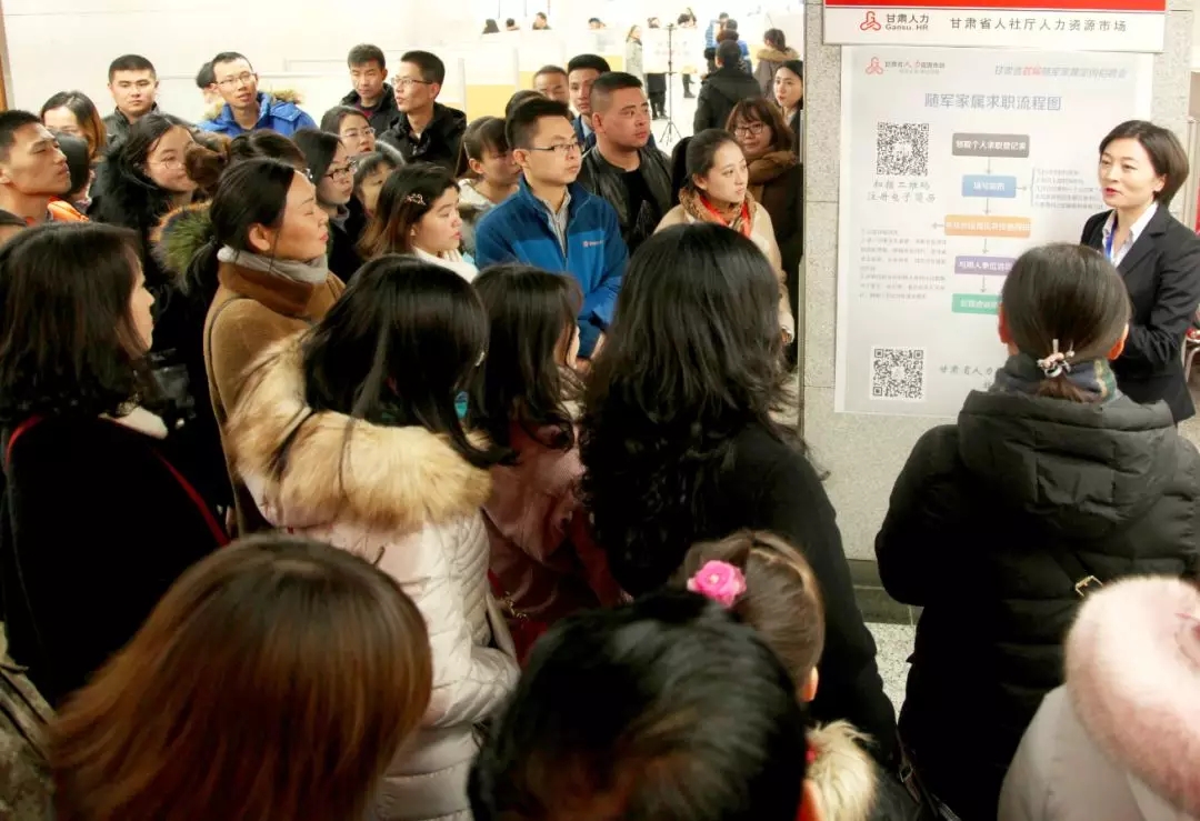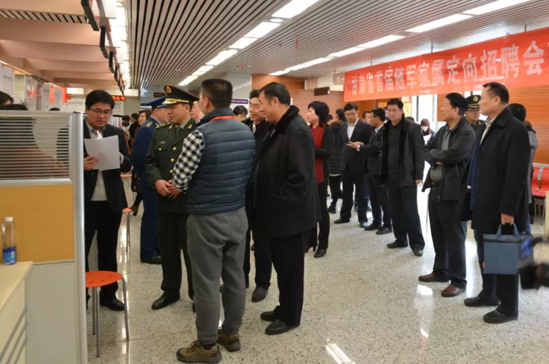 2月10日上午,我省首届随军家属定向招聘会在省人力资源市场举行。本次招聘会由甘肃省人力资源和社会保障厅、甘肃省民政厅、甘肃省军区政治工作局联合举办,由甘肃省双拥办、甘肃省军转办、甘肃省转业军官服务中心、甘肃省人力资源市场和14个市(州)人社局、民政局、军分区承办。我市400多名随军家属参加了主会场招聘活动。 当天,兰州城市供水(集团)有限公司、兰州能源投资(集团)有限公司、西固区中医院、兰州连铝总医院、甘肃盛达集团股份有限公司等67家企事业单位参加了招聘会,提供各类就业岗位2377个。我市及周边驻军部队的540多名随军家属进场参加了招聘活动,达成意向性就业协议157份。同时,省人力资源市场还为210多名随军家属提供了就业政策咨询服务,为112名随军家属提供了一对一就业指导并进行了求职登记,为160多名随军家属提供了求职技巧讲解服务。 为做好这次随军家属定向招聘会组织工作,按照省双拥办部署,市双拥办会同兰州警备区政治工作处向驻兰旅以上部队发出通知,要求驻兰各部队组织动员随军家属积极参与,并开展摸底登记工作。各区县双拥办和人武部迅速将招聘会信息传递到每个部队,让随军家属及时知晓招聘信息。