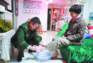 5.秉承“垂范”理念,在家也为母亲洗脚。